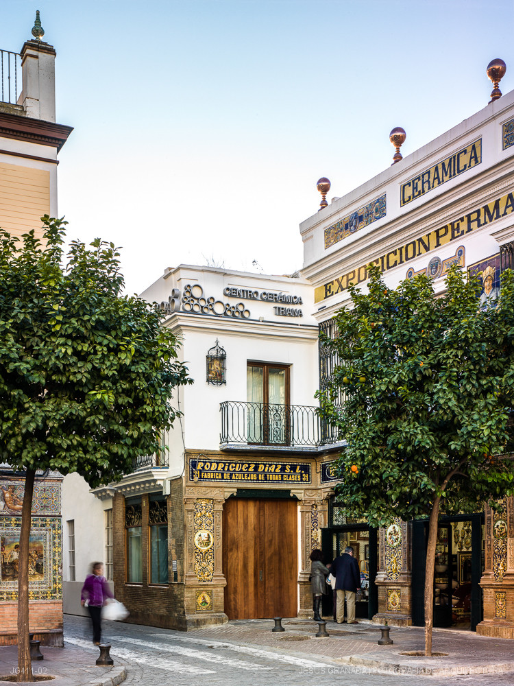 Es una zona urbana compleja que mezcla los patios de los vecinos, talleres de artesanía, casas populares y otro tipo de vivienda que se originó a partir del crecimiento residencial de mediados del siglo XX. En Triana hay una coexistencia entre la artesanía tradicional y las actividades artísticas como la cerámica, el flamenco, etc, que están fuertemente identificado con el área y que se refleja claramente en las bulliciosas calles. Triana es el lugar para disfrutar de la vida sencilla de cada día. La producción de cerámica es uno de los principales oficios en los que el desarrollo de Triana se basa desde su origen, existiendo por lo tanto una fuerte identidad entre el barrio y la actividad cerámica.